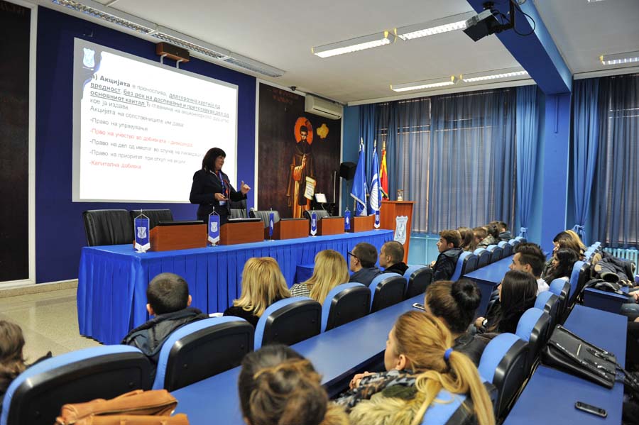 The Faculty Economics within the University of Tourism and Management in Skopje on 11.12.2015 at the UTMS held training on the topic "Managerial Economics and securities as an opportunity for profit," attended by 62 maturatni part of the teaching staff of secondary school "Arseni Jovkov" Skopje.