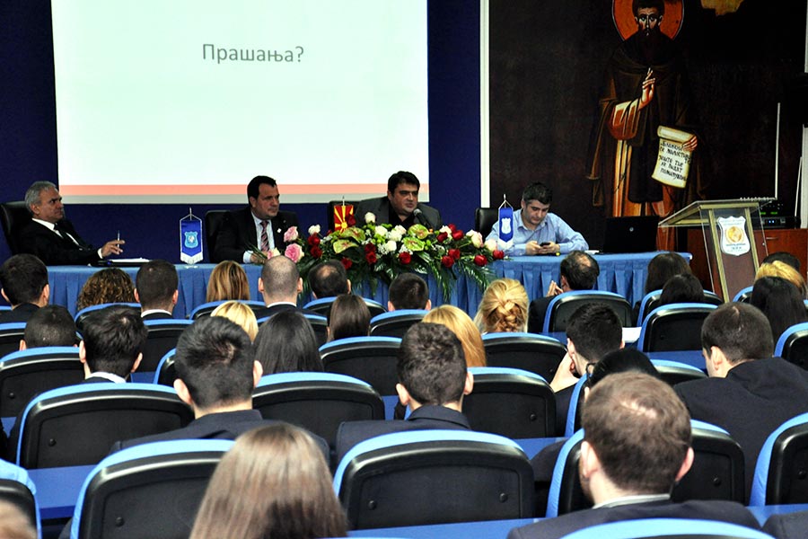 Addressing the students, however, the director of the Agency for Electronic Communications ( AEC ), Mr. Robert Ordanoski started by presenting himself as a person who for many years performed senior management positions at T - Mobile, which he said was of particular importance in its construction managerial position primarily because he was a great opportunity to work with top experts in the field of telecommunications in Germany, which at that time run by Macedonian telecommunications. This experience with them, but 13 years positioning of the top management of T - Mobile, contributed to define and increase its knowledge capital, now generously shared with employees of the Agency for Electronic Communications.
