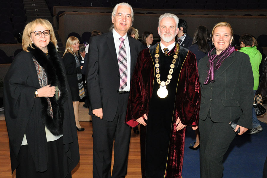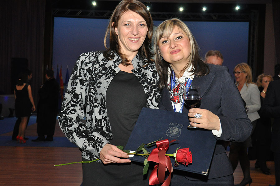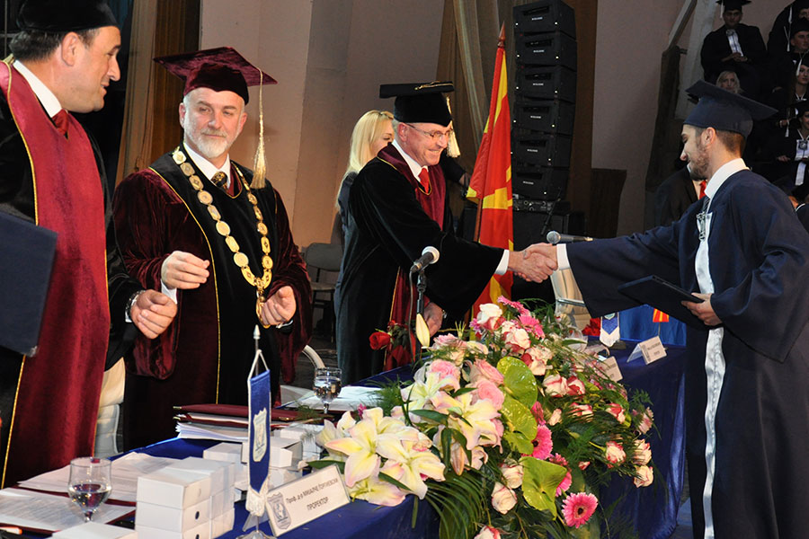 On the promotion of the best students of first and second cycle appropriate gifts were given, and Angelina Stefkovska - Manevska and Ivona Ravlikj received Summa Cum Laude honor for being the best students. Ivona Ravlikj addressing on behalf of all the graduates stated that it is an honor to be a student at UTMS, because this institution on a perfect way blends theory and practice. Also Tasheva Elena, Daniela Karovska, Andrea Iloski and Verica Miteva received Summa Cum Laude honor.