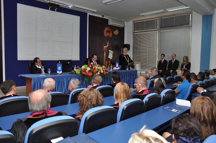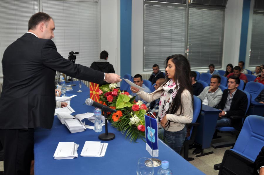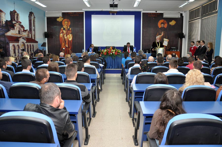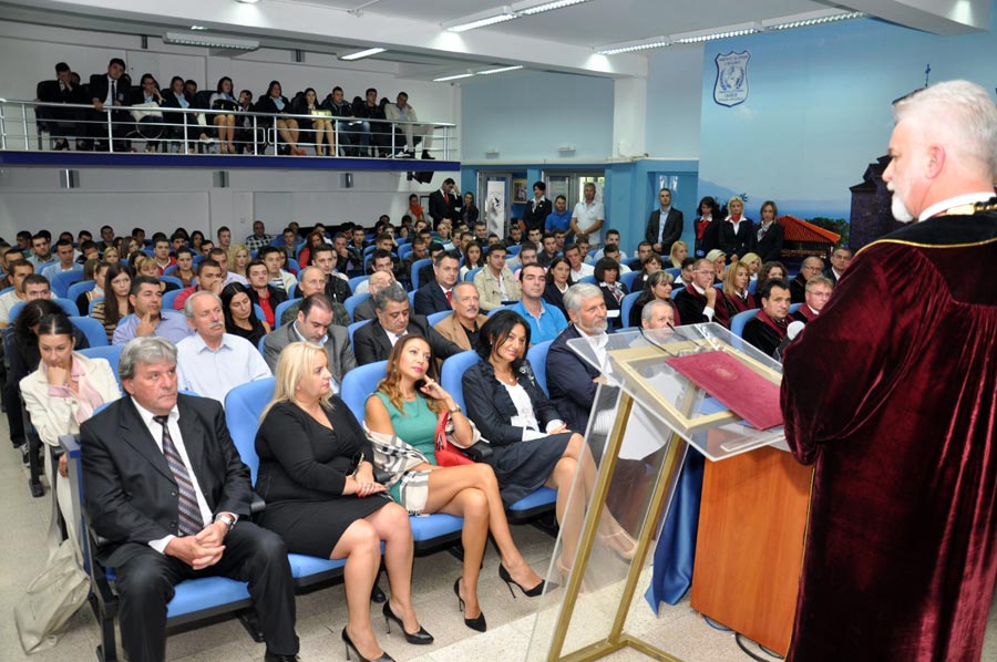 In the crowded amphitheater at the University of Tourism and Management in Skopje, on the 16th of this month, the first academic class was held for the newly enrolled students of the University, officially marking the beginning of the academic 2013/14 year. Apart from the future academic citizens that have decided to continue their education on one of the seven faculties at the University of Tourism and Management in Skopje, on the ceremony attended prominent figures from the public and cultural life of the Republic of Macedonia. The students and the guests were welcomed by the Rector of the University of Tourism and Management in Skopje, prof. dr. Ace Milenkovski. He wished a warm welcome to the new students, as he said in the temple of knowledge, while the members of the Advisory Board, thanked them for their selfless efforts so far to improve the performance of the University of Tourism and Management in Skopje.