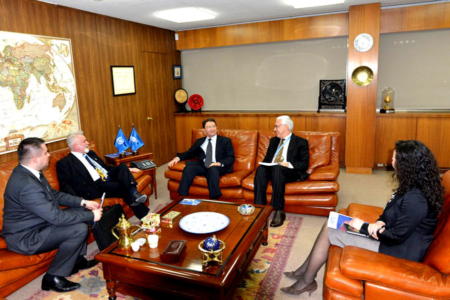 The delegation of the University of Tourism and Management in Skopje, headed by the Chancellor Ace Milenkovski, at the headquarters of the World Tourism Organization (UNWTO) in Madrid, had a meeting with the head of the institution, the Secretary-General Taleb Rifai, the CEO Marcia Favilia, and the Director of the Knowledge Network Programme Eundzhi Tae. Moreover, the Chancellor Milenkovski introduced them with the activities of UTMS within UNWTO, current and future co-operation, areas of interest and specific projects which include our University. Mr. Rifai expressed satisfaction that UTMS is an active participant and part of the supporting members of the UNWTO, stressing the importance of cooperation of scientific institutions in the interest of the development of global tourism. In a friendly and cordial atmosphere, since this is not the first meeting between the representatives of UTMS and the heads of UNWTO, there was a discussion about the opportunities and tourism potentials of Macedonia, where Mr. Rifai was pleased to accept the invitation from the Chancellor Milenkovski to visit Macedonia. It has been preliminary agreed that Mr. Taleb Rifai in the middle of this year, is about to come to Macedonia, and the specific date will be further determined.