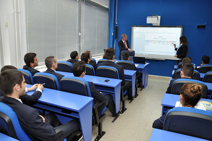 Пред студентите симултано и со активно учество на презентерите: Хана Ајдини, Албина Дарлишта и Сања Станкова, беше разработена темата „Организирањето (како фаза на Менаџментот) на реалниот пример на Универзитетот за туризам и менаџмент во Скопје".
