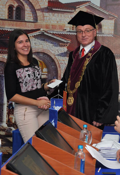 Во рамките на оджувањето на свечениот прв час на студентите на Екомскиот факултет свечено им беа врачени е-индексите од страна на Деканот.