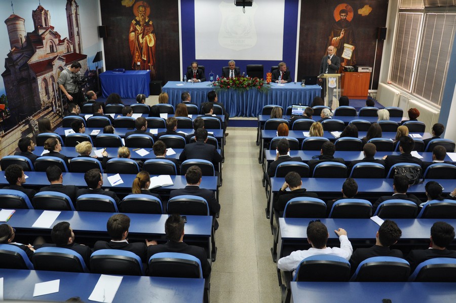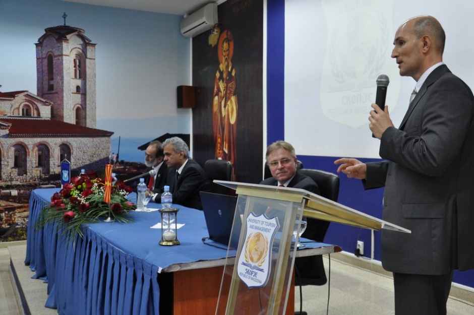 „Монетарната политика во Македонија во услови на должничка криза во еврозоната, и високата неизвесност на светските финансиски пазари“, беше темата на која на 04.04.2013 година на Универзитетот за туризам и менаџмент Скопје, предавање одржа Гувернерот на Народна Банка на Република Македонија, Димитар Богов. И ова гостување на г-дин Богов е дел од определбата на УТМС да им овозможува на своите студенти стекнување научни, но и практични знаења од еминентни стручњаци и практичари од различни области. Овој пат, од областа на економијата, банкарството, финансиите, глобализацијата ...