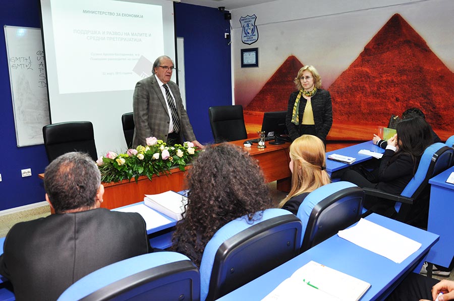 На почетокот на својата презентација м-р Сузана Арсова-Костадинова укажа дека ова предавање главно се концентрира на програмата за поддршка и развој на претприемаштвото и развој на конкурентноста на малите и средни претпријатија, која Министерството за економија на РМ ја имплементира веќе неколку години. Почетиокот изобилуваше со статистички информации за бројот на мали и средни претпријатија во РМ, кои, не само кај нас, туку и во ЕУ, се идентификуваат како столб за развој на сите економии.