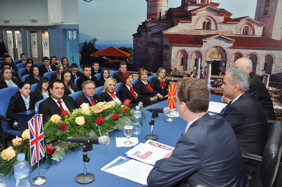 Инаку, во рамките на посетата на УТМС, Амбасадорот на Обединетото Кралство на Велика Британија оствари средба со проректорот за меѓународна соработка Проф. Д-р Зоран Ивановски, со проректорот за настава Проф. Д-р Мијалче Ѓоргиевски, како и со професорот Димитар Бојаџиески, на која беше искажано взаемно задоволство од ваквиот вид соработка на амбасадата со УТМС, која е од обострана корист.