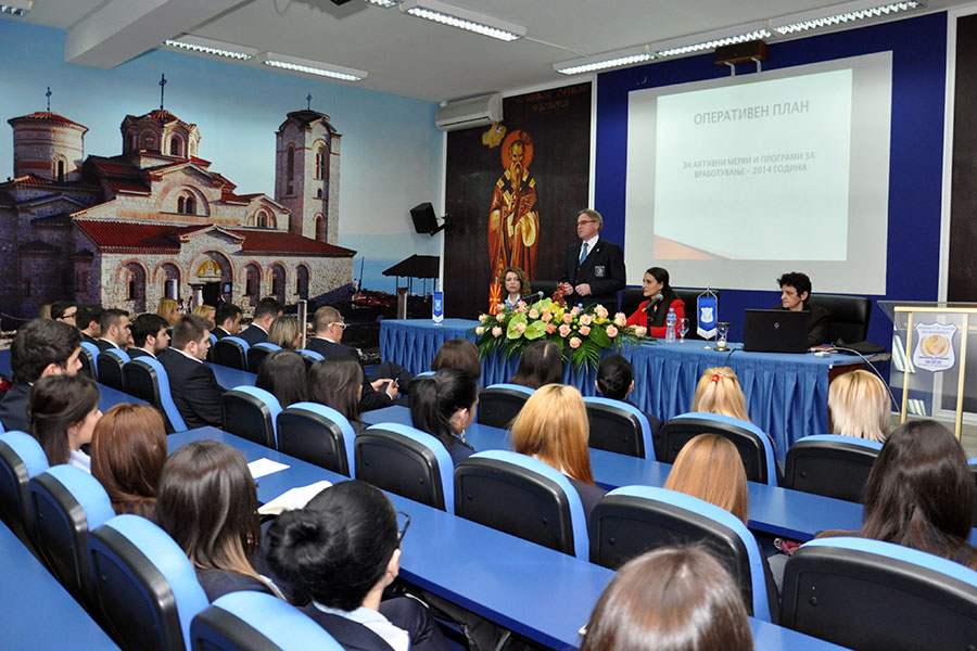 Директорката Алексовска која беше придружувана од координаторот на Секторот за услуги за поддршка за вработување Павлина Костовска-Грујоска, во своето предавање низ еден приемчив, позициониран и развоен модус, со интерактивност од страна на студентите, се задржа на “најгорливите“ прашања, во функција на активизирање на мерките на Владата на макро, мезо и микро ниво.