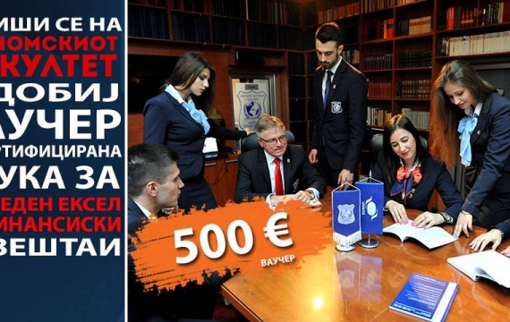 Економскиот факултет во рамките на уписните рокови во академската 2017-2018 година, за новозапишаните студенти во прва година доделува ваучер од 500 ЕУ за сертифицирана обука за напреден ексел за...